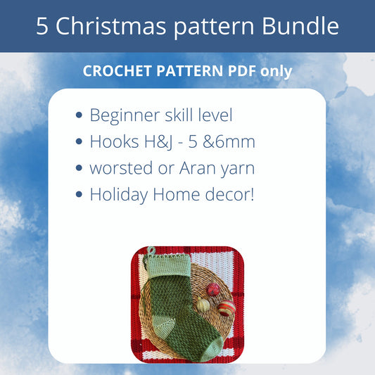 5 Christmas pattern BUNDLE: Holiday Crochet PATTERNS PDF - Easy Projects for Crocheters. Beginner friendly crochet pattern set