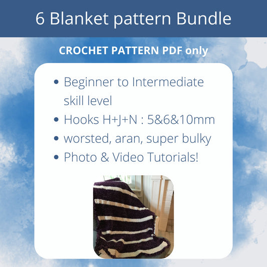 6 Blanket Bundle Crochet PATTERNS. Full set of Afghan crochet pattern for beginner to intermediate crocheters. Baby blankets and Throws.