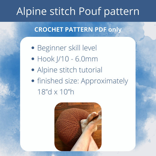 Alpine stitch Pouf Crochet PATTERN. Floor Pillow Ottoman Poof. Easy crochet pattern for beginner crocheters. PDF digital download only