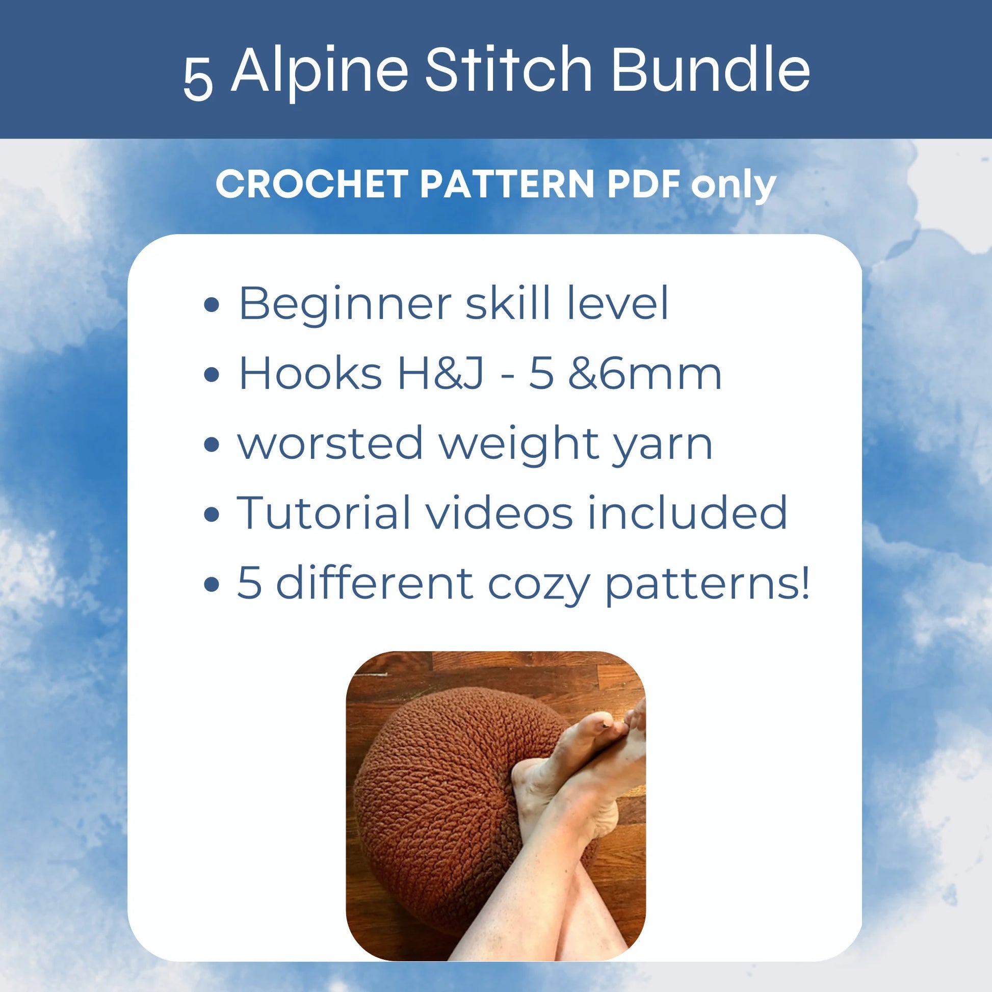 5 Alpine stitch Bundle Crochet PATTERNs. A set of Easy crochet pattern for beginner crocheters. Digital Download PDF