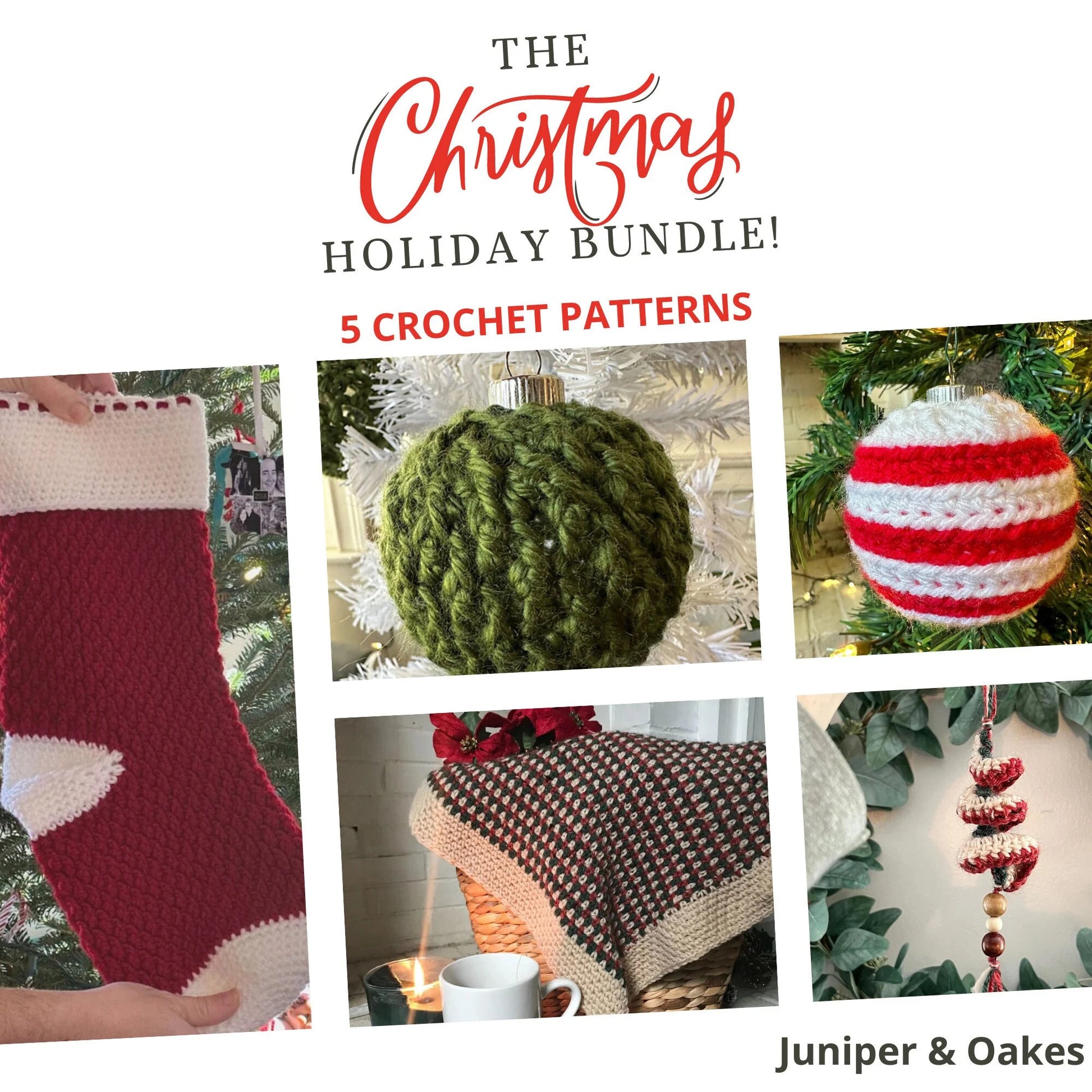 5 Holiday pattern BUNDLE: Christmas Crochet PATTERNS PDF - Easy Projects for Crocheters. Beginner friendly crochet pattern set