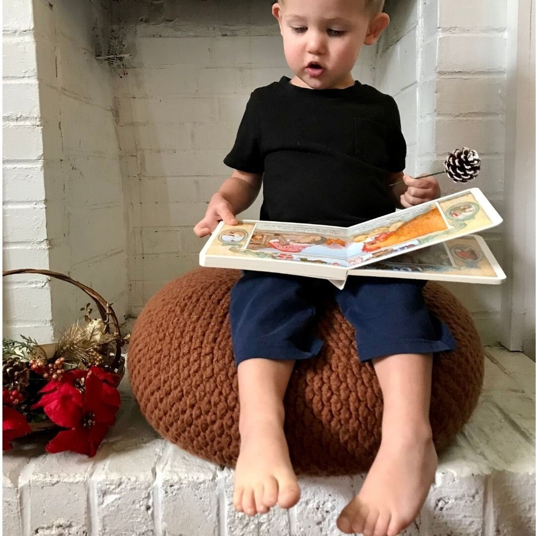 Add comfort and style to your living room with this kid-friendly Alpine Stitch Pouf Crochet Pattern!