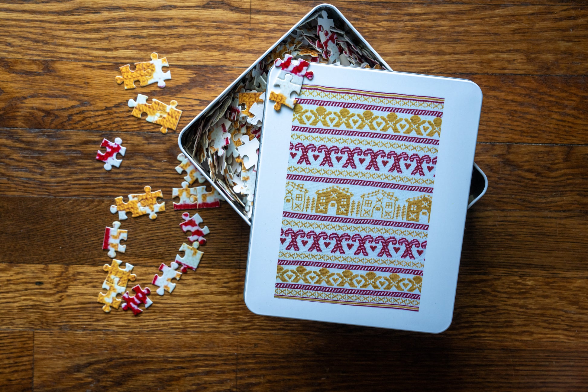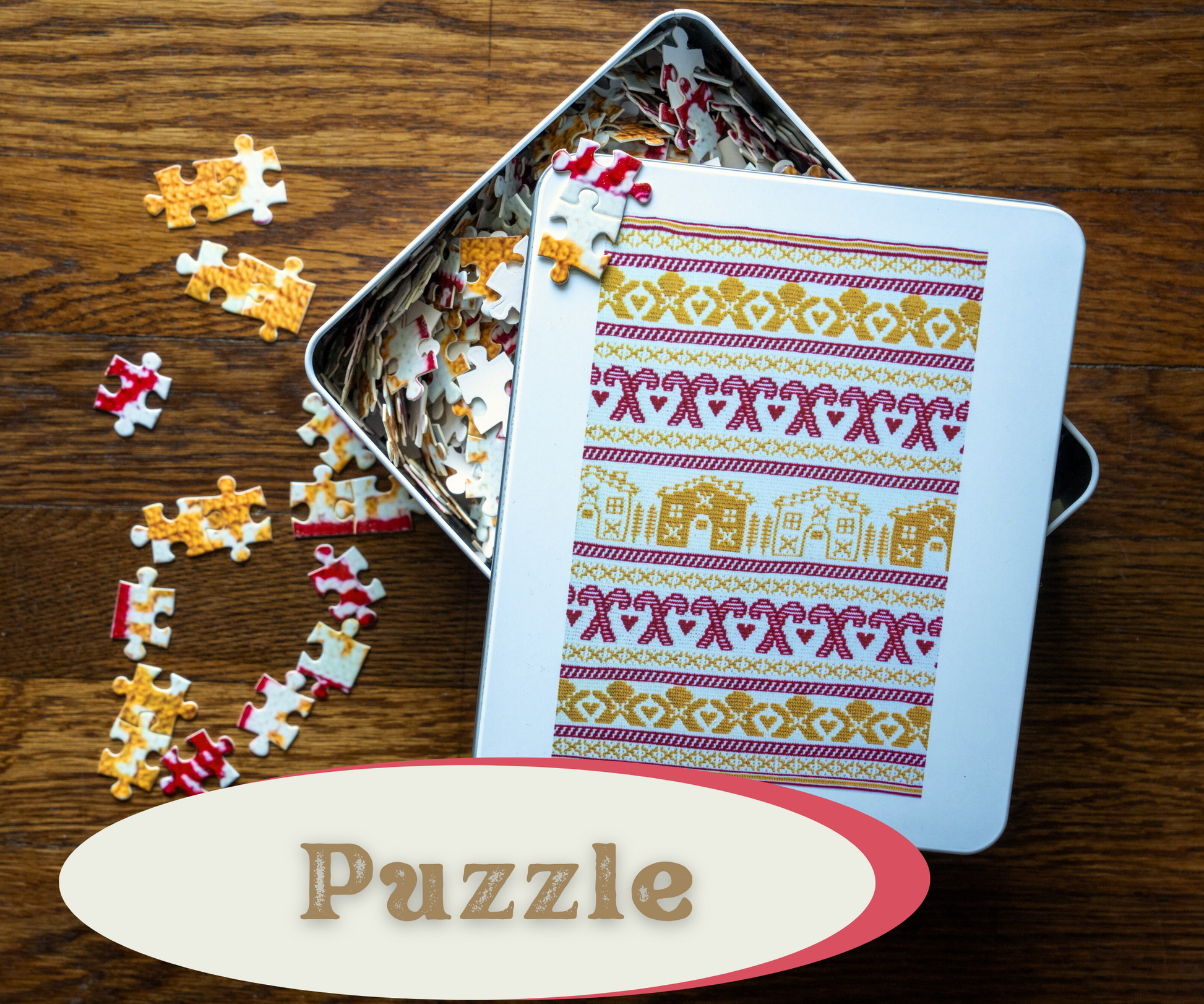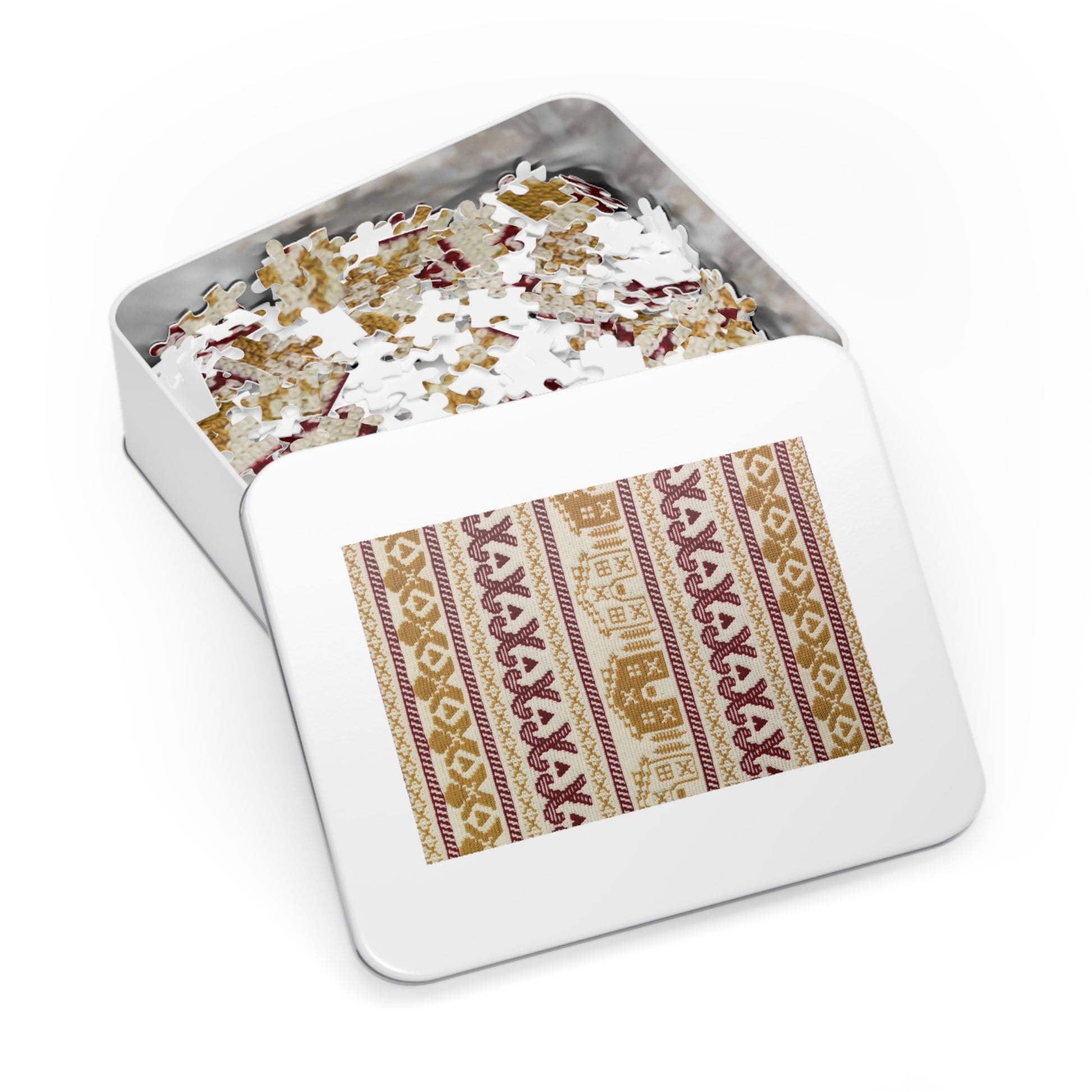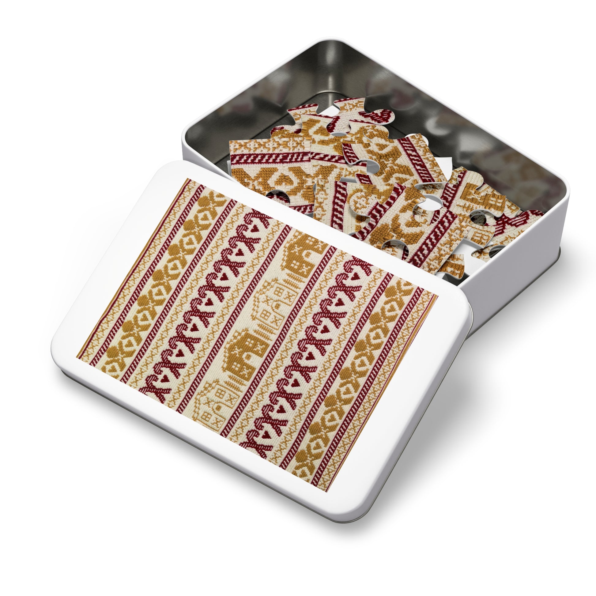 - Each puzzle comes in a stylish white metal tin box