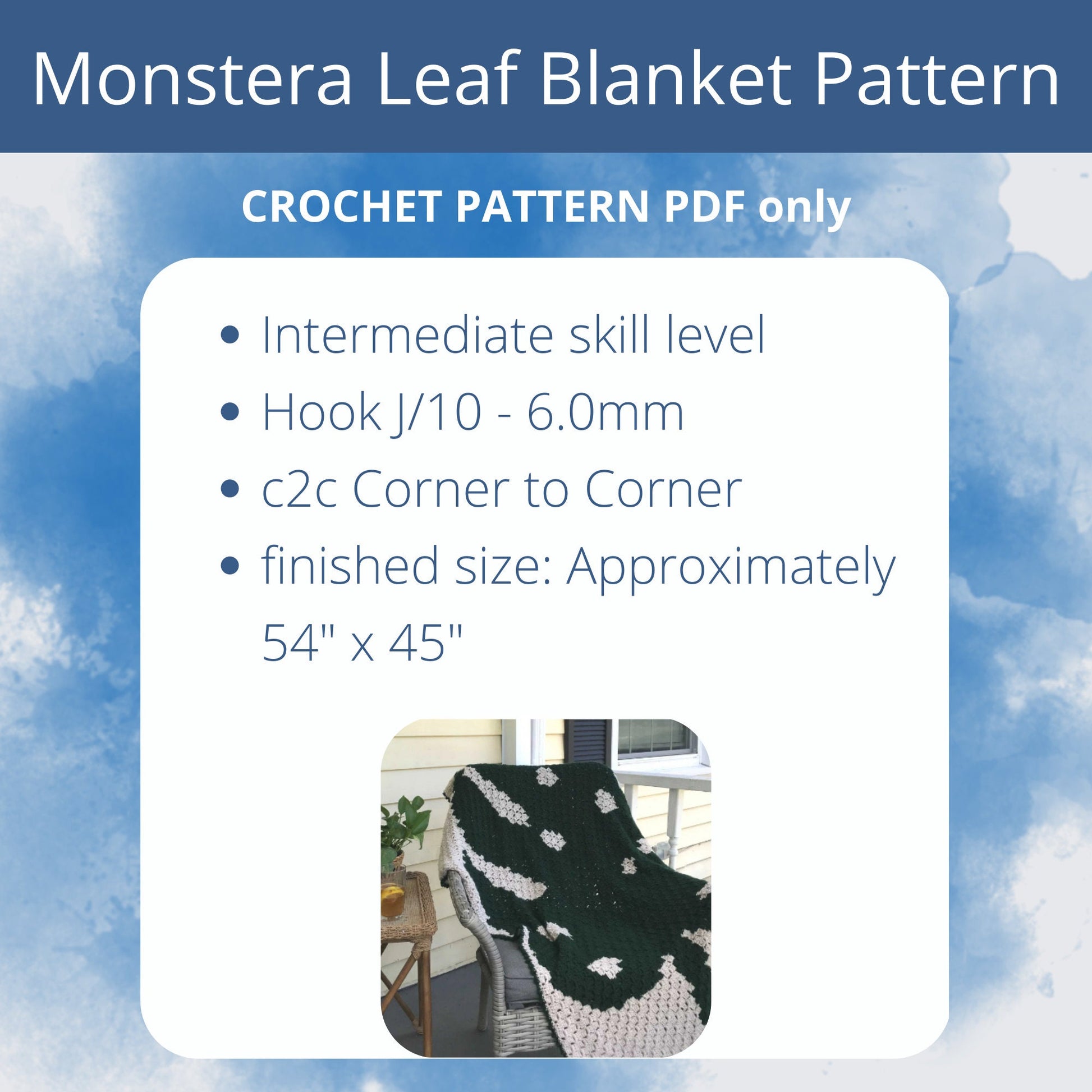 Crochet Blanket Pattern: Monstera Leaf C2C Blanket. Plant Leaf Corner to Corner Afghan Throw Rug
