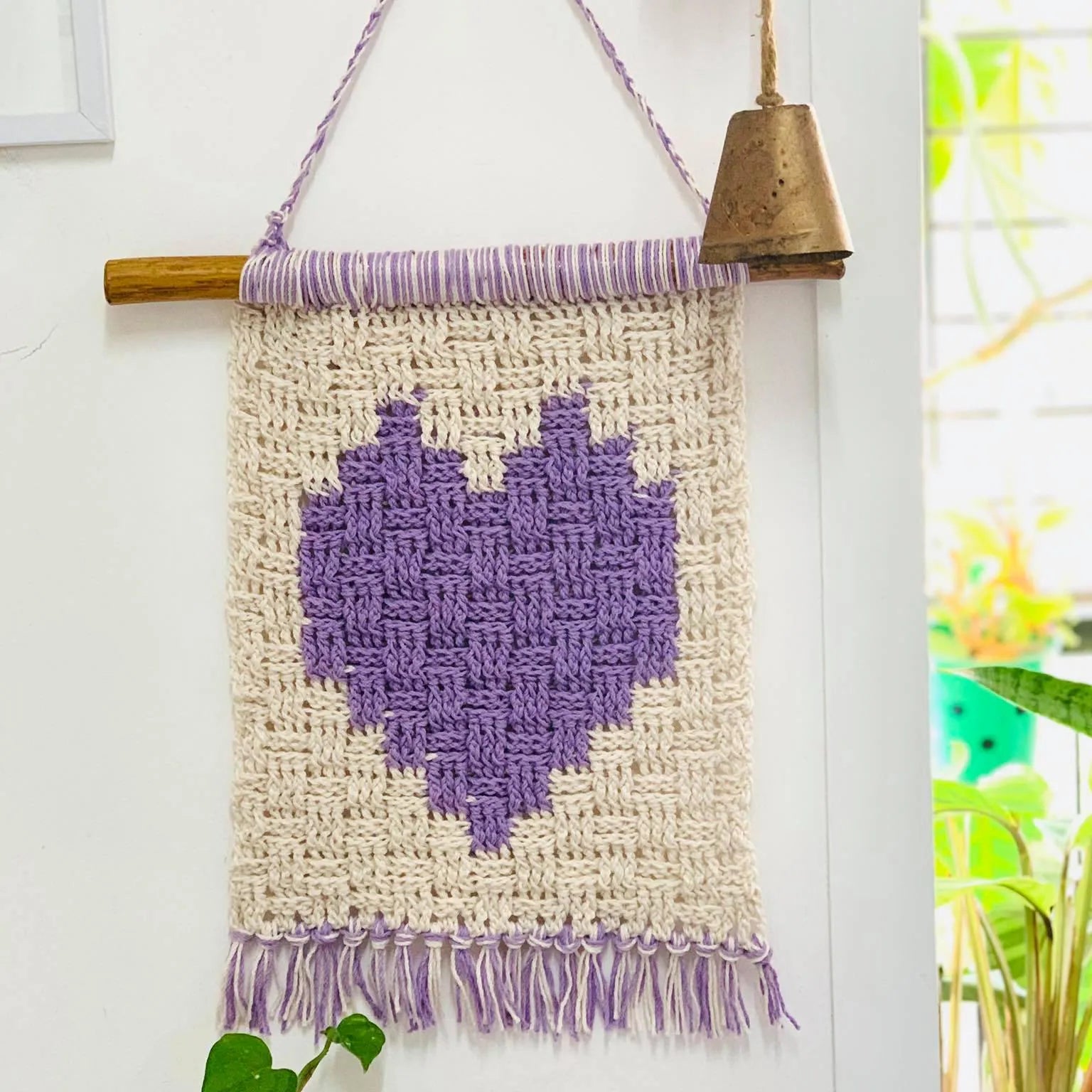 Crochet Tapestry Pattern: Heart in a Basket Wall Hanging. Handmade Crochet Knit Tapestry. Valentine's Day macrochet wall hanging