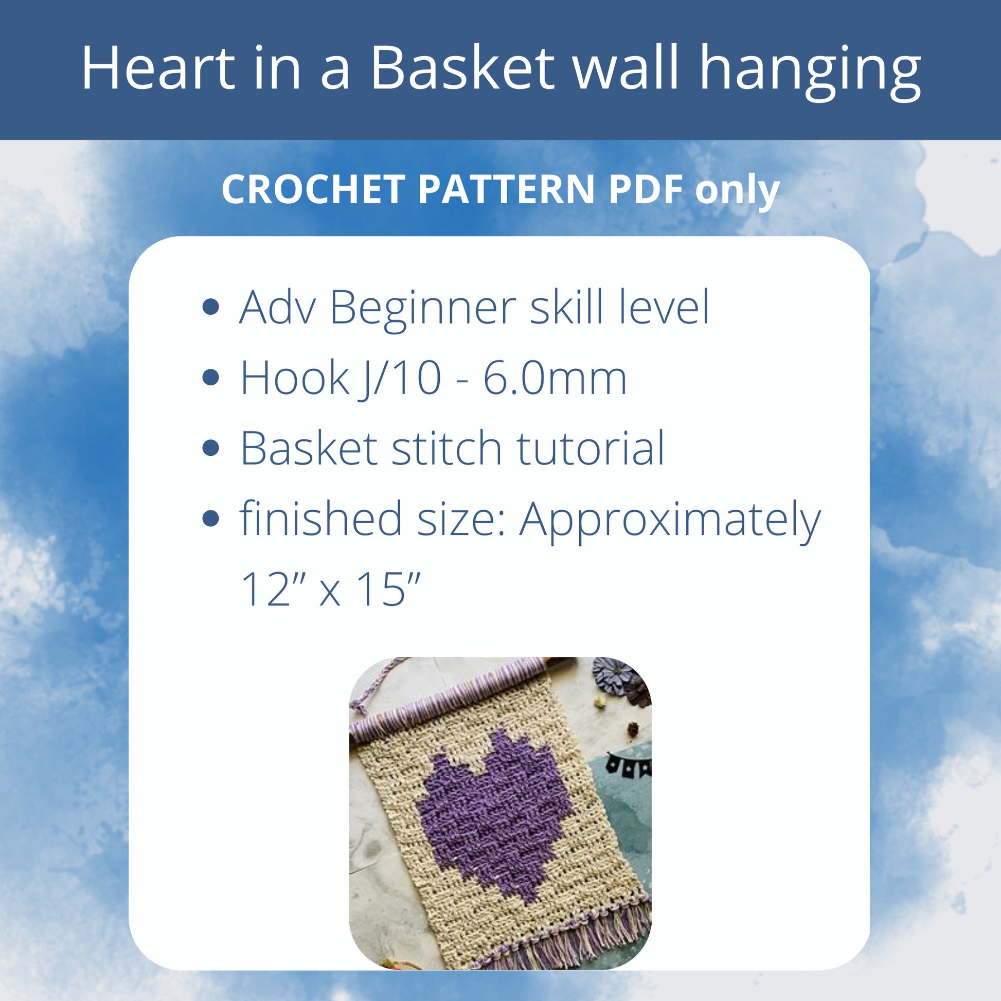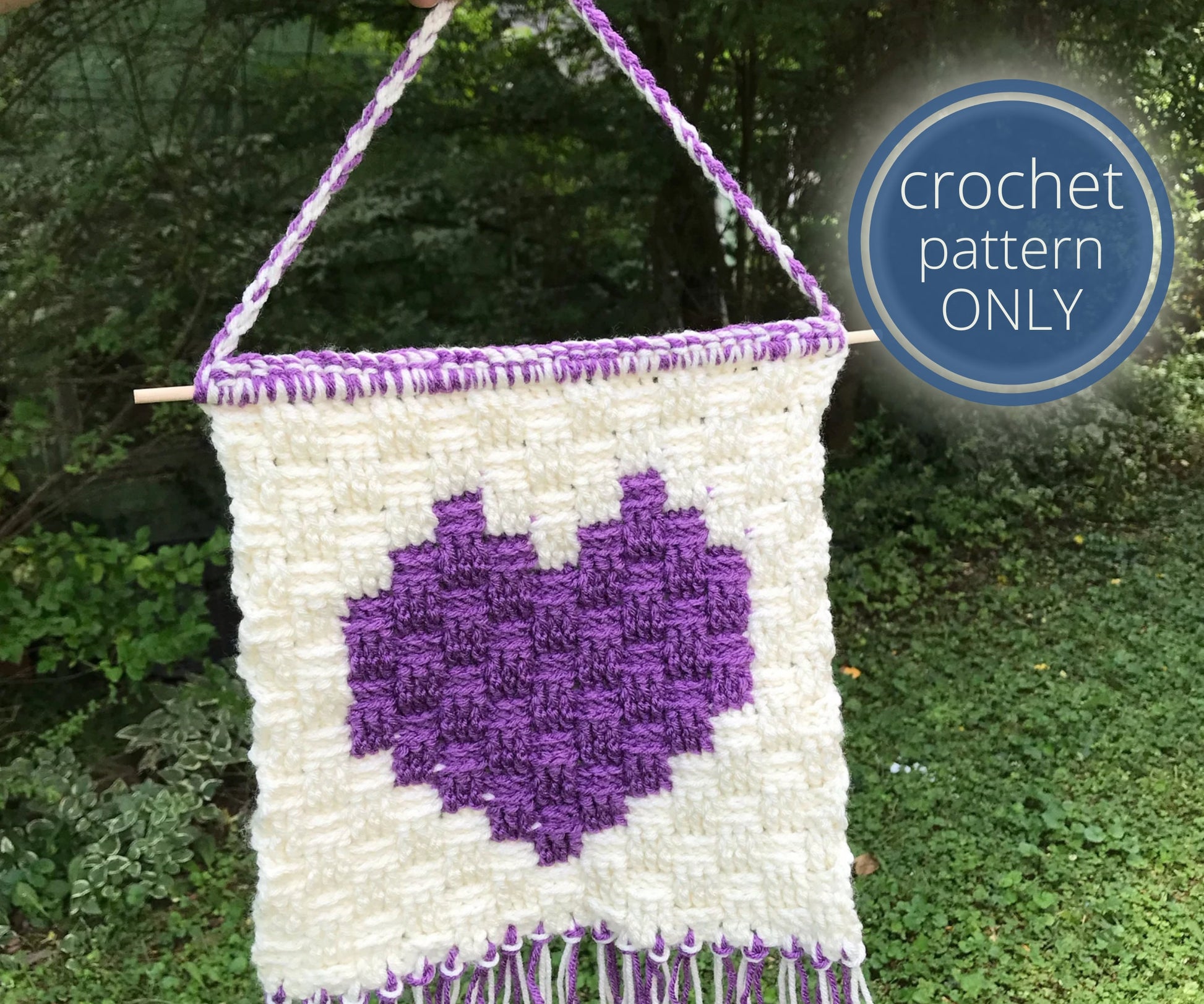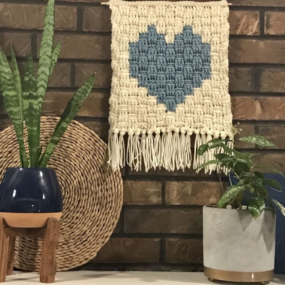 Crocheted using the basket stitch, this Crochet Tapestry Pattern gets it's name from the stitch and the cute heart! The Heart in a Basket Wall Hanging PDF pattern comes with pictures and step-by-step instructions to make the process super easy for advanced beginners!