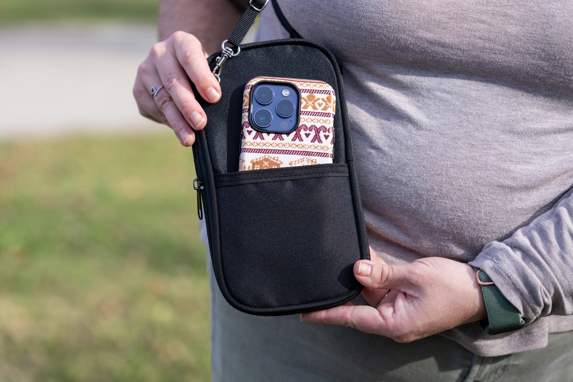 - Perfectly sized to hold your phone, passport, or small on-the-go essentials.