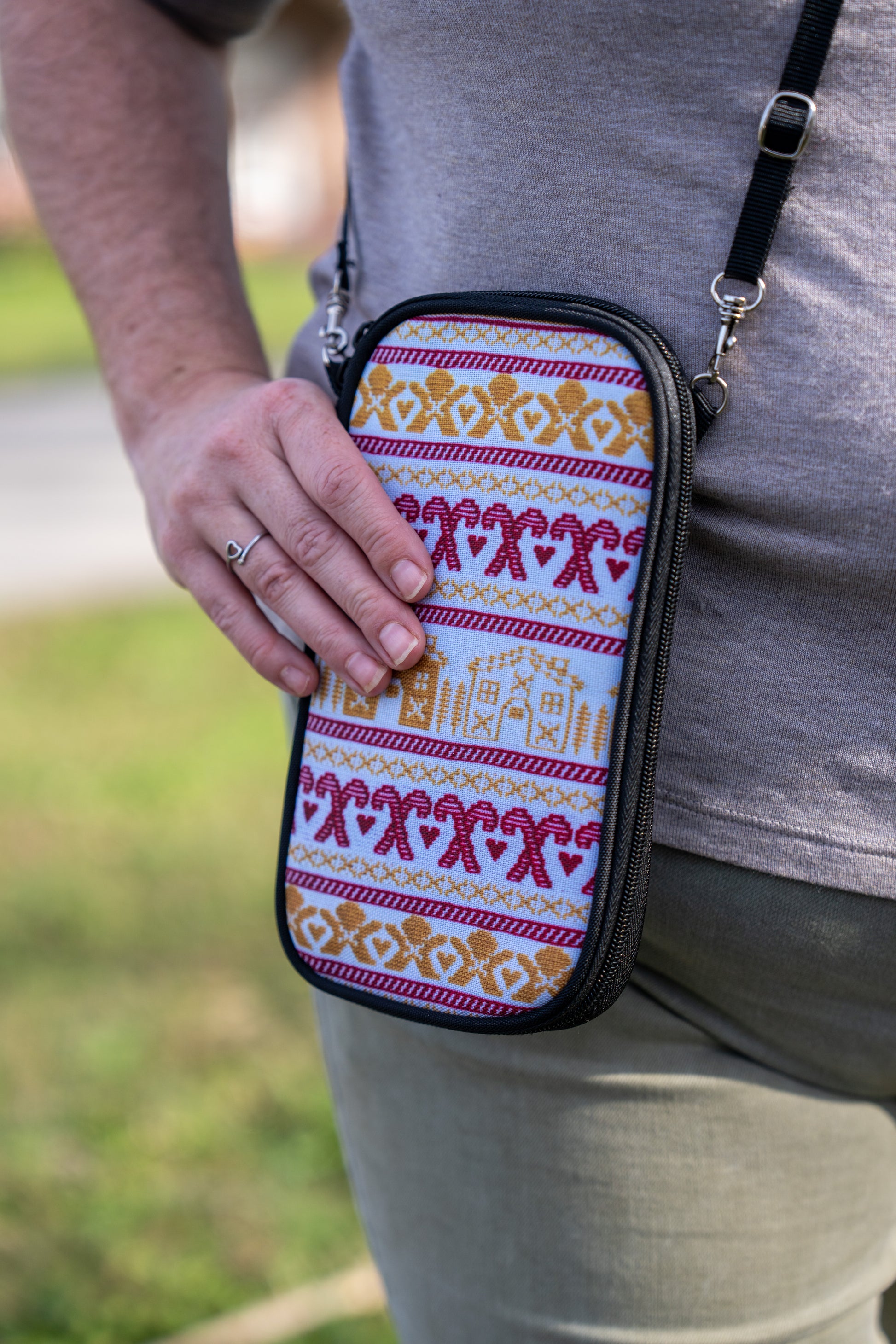 Take your love for crochet everywhere you go with this **Mosaic Gingerbread Blanket Phone/Passport Purse**! Featuring the festive design of the Mosaic Gingerbread Blanket, this crossbody purse is lightweight, practical, and adorned with the whimsical gingerbread men, candy canes, and houses that have made this pattern a favorite. Whether you’re running errands, heading to a holiday market, or traveling the world, this purse keeps your essentials close and your style on point.