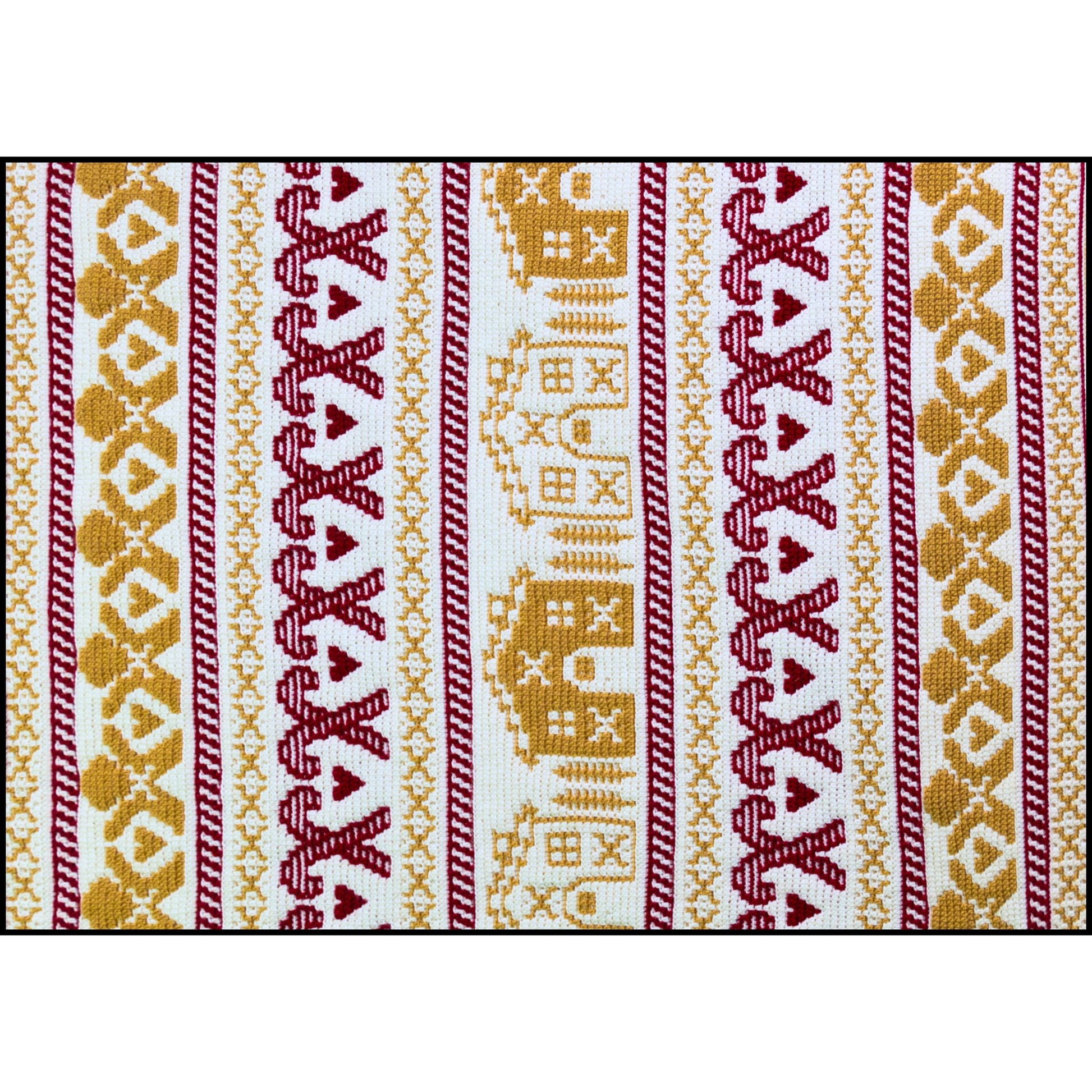 Features the intricate Mosaic Gingerbread Blanket design, giving the look of crochet in a woven format.