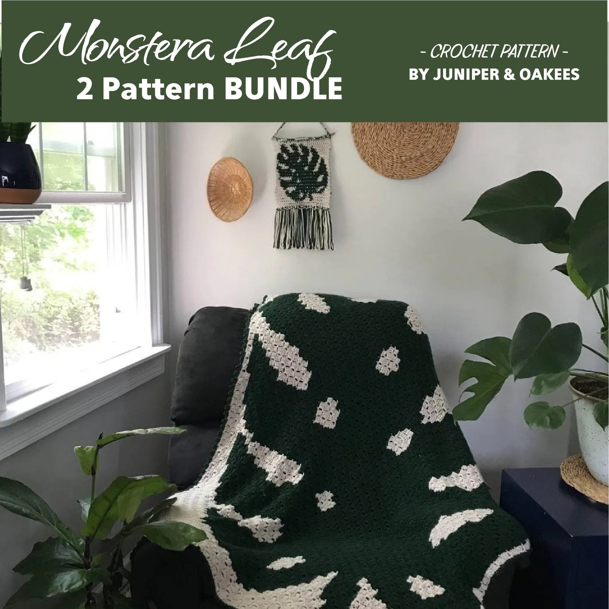 Monstera Leaf Crochet BUNDLE. Tapestry and Blanket Patterns: Monstera Leaf C2C Afghan. Plant Leaf Corner to Corner c2c Wall hanging