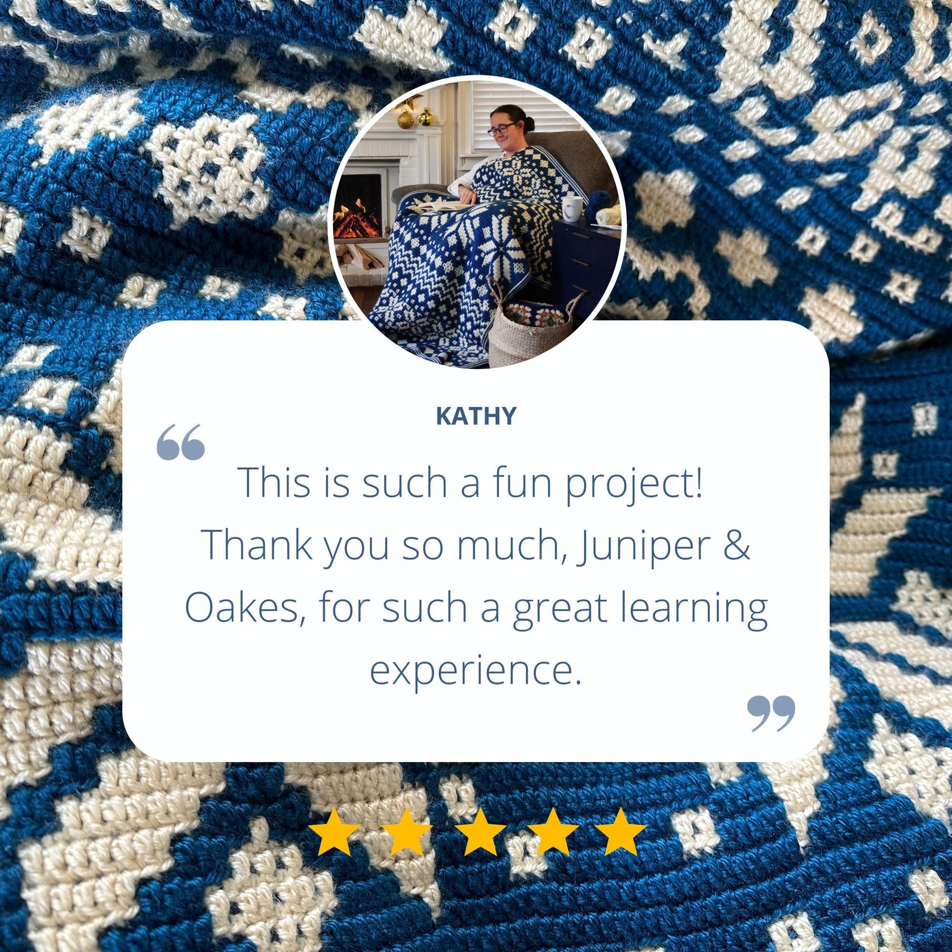 The Nordic Star CAL is designed for adventurous beginners and uses the overlay mosaic crochet technique. This unique yet simple method allows you to create intricate colorwork designs without the hassle of yarn tangling or endless ends to weave in.