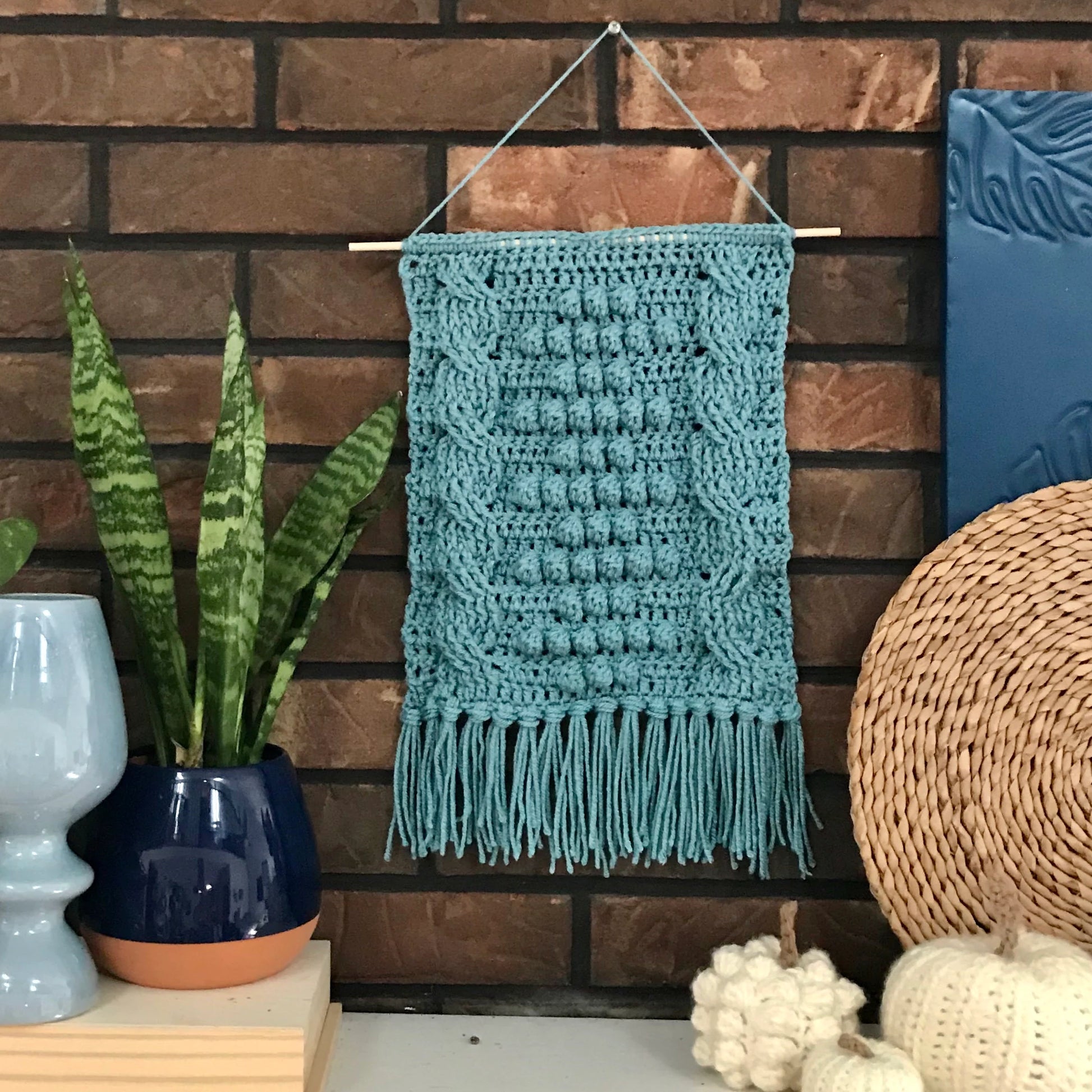PDF Crochet Wall Hanging Pattern. Crochet Pattern: Georgia Tapestry Wall Hanging is textured with bobbles and cables