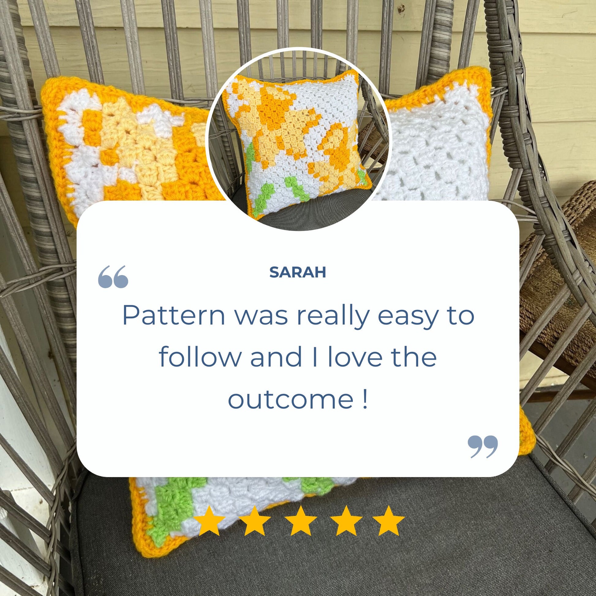 💛 The Daffodil Pillow is perfect for adding a pop of color and texture to your living room, bedroom, or any other space in need of a handmade touch. With clear instructions and detailed stitch diagrams, you'll be able to create a one-of-a-kind piece of spring decor, that is as beautiful as it is cozy.