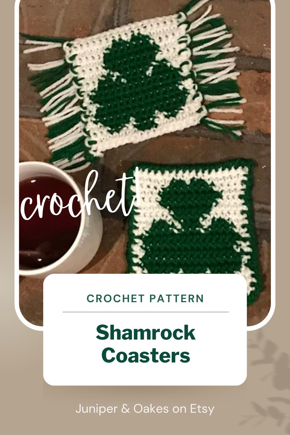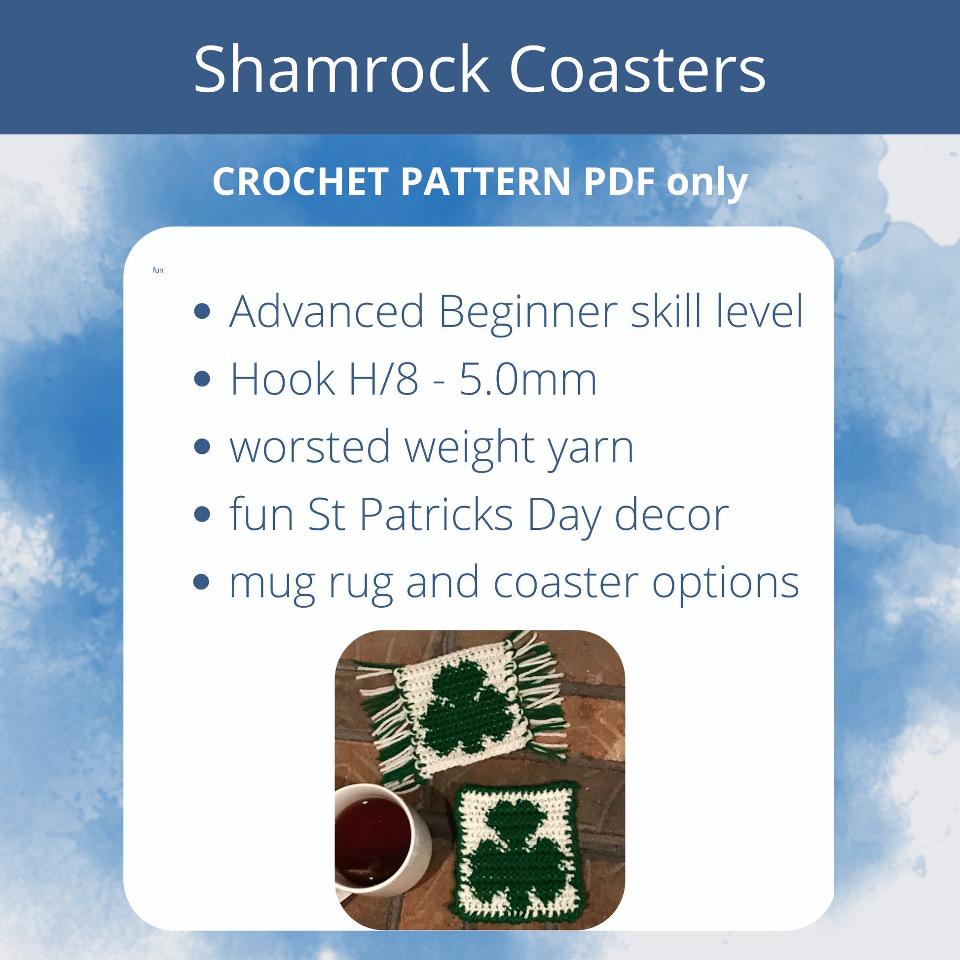 PDF Shamrock Crochet Coaster PATTERN. Lucky Crochet Mug Rug, Irish Coaster Crochet Pattern. Green Crochet Home Decor