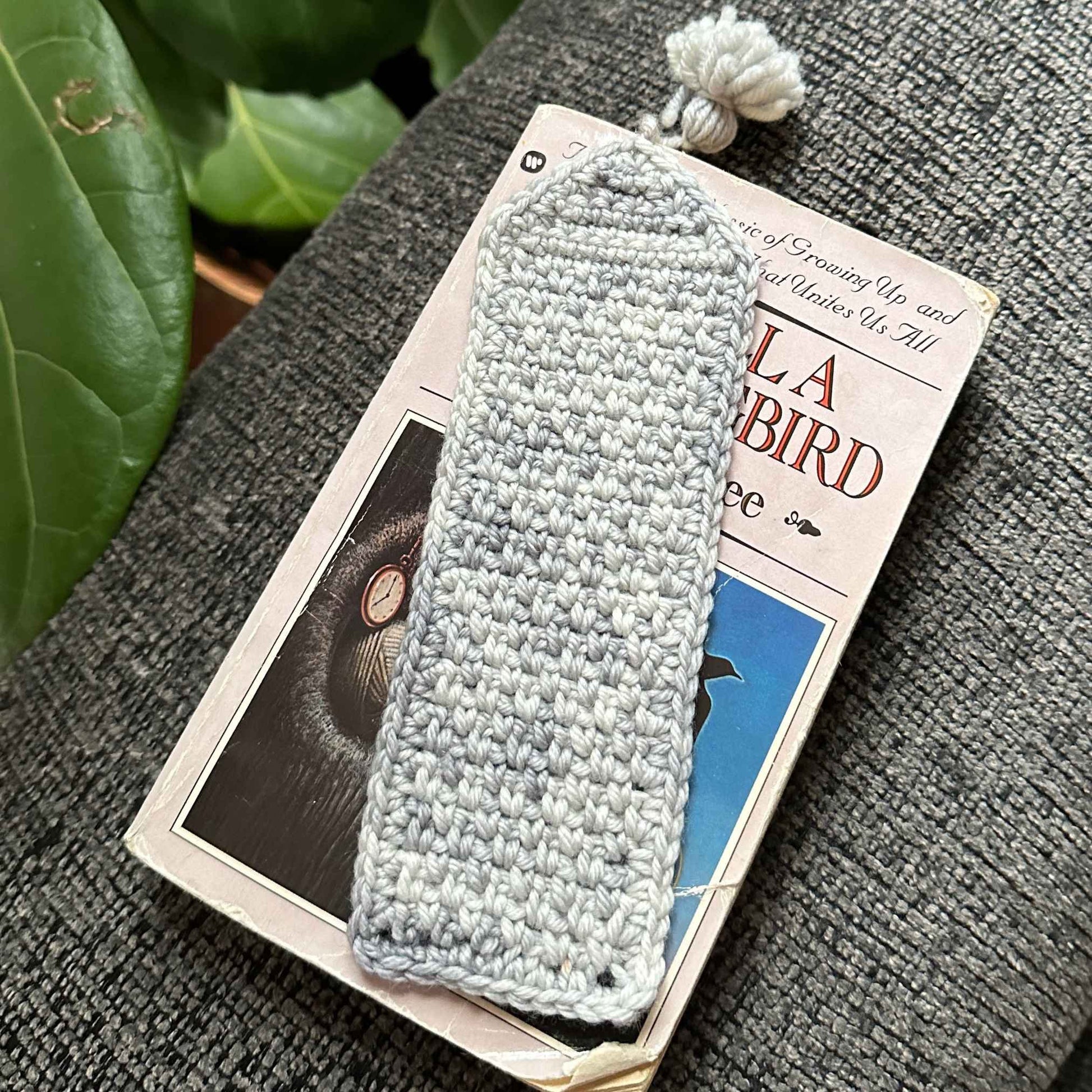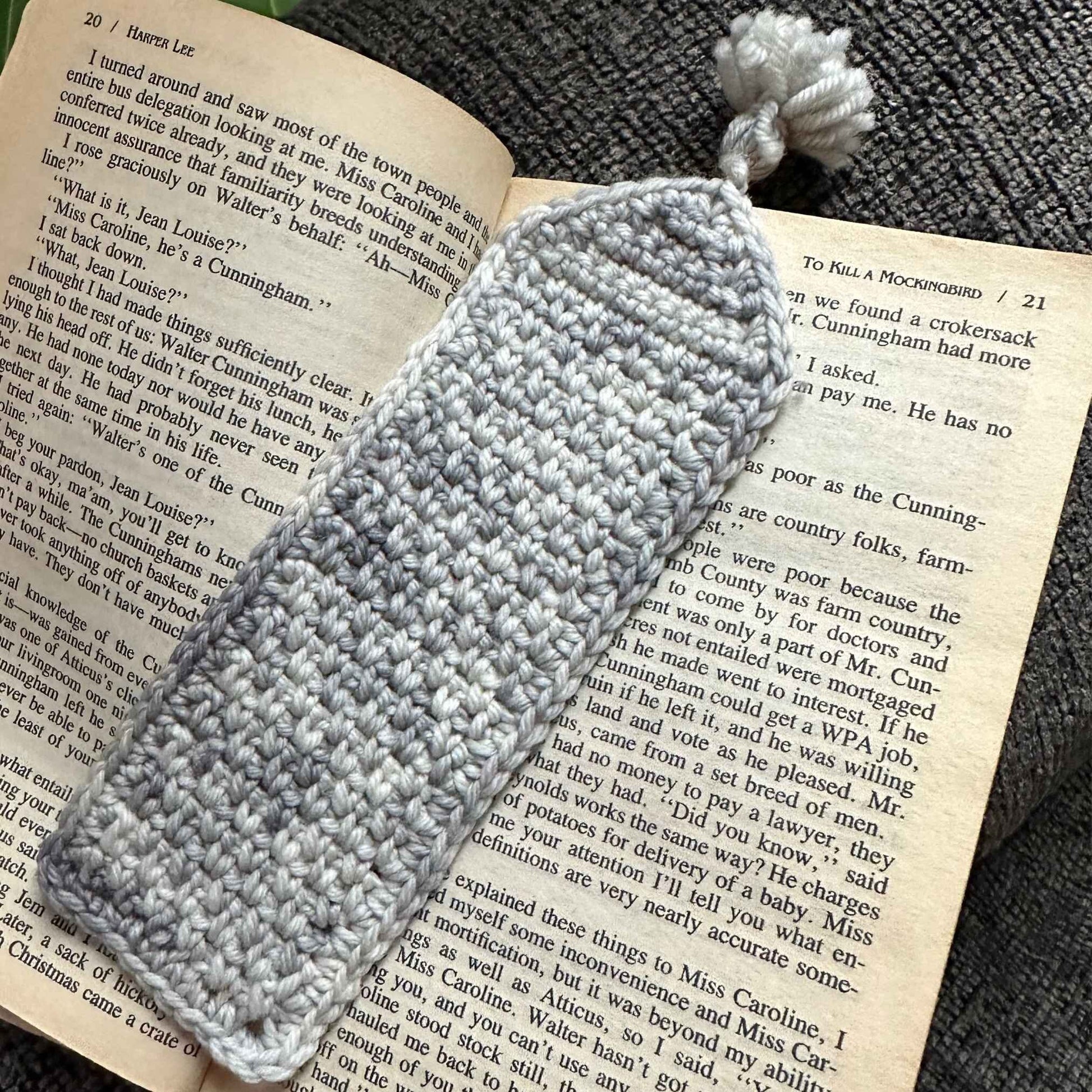 Simple Bookmark Crochet Pattern featuring Moss Stitch - Easy Project for Book Lovers and Crocheters | Linen | Granite | Woven Stitch