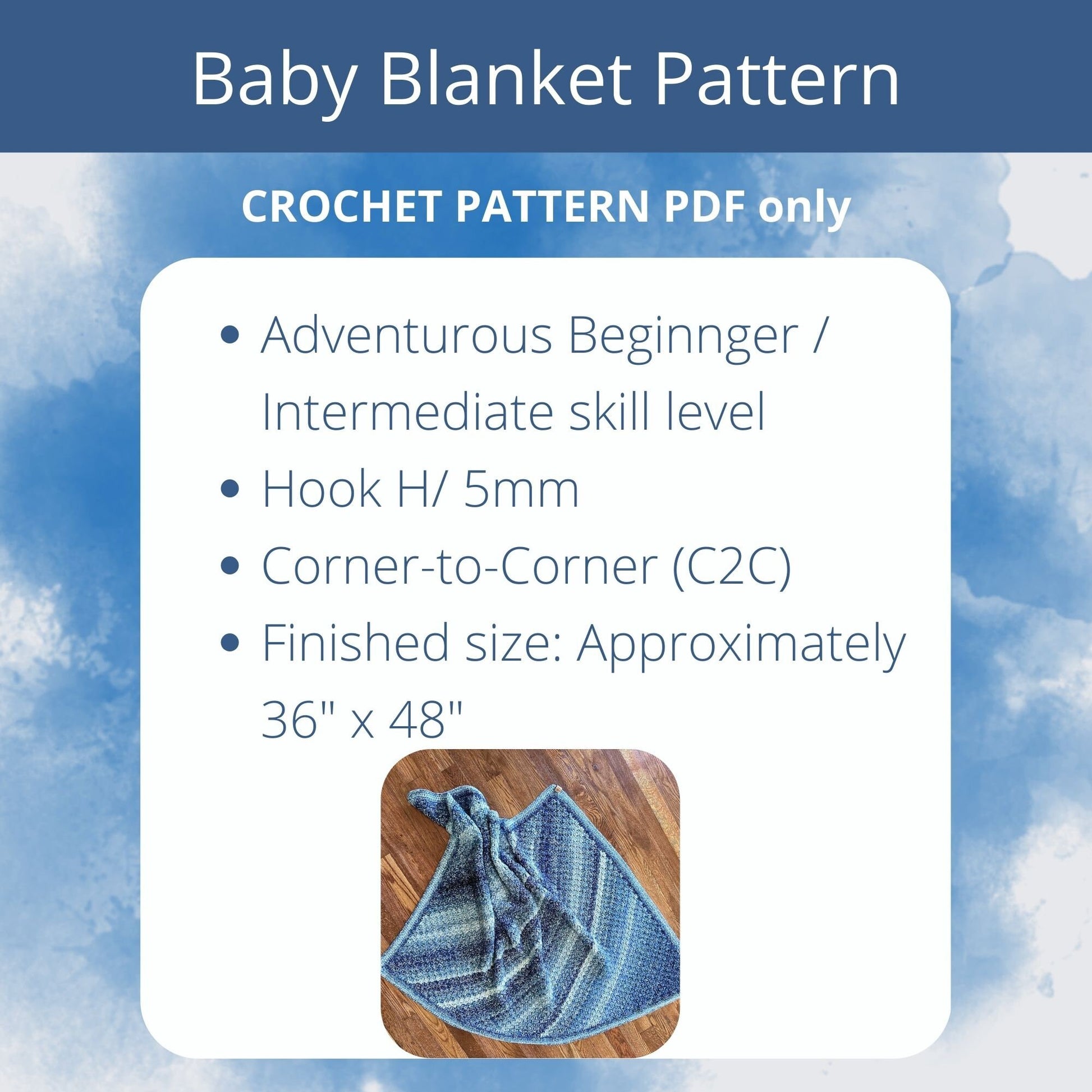 Simple Ombre C2C Baby Blanket Crochet Pattern, Advanced Beginner, Worsted Yarn - Pattern PDF