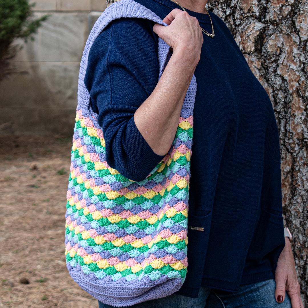 Whether you're headed to the market or taking a crochet project on the go, you can carry all your essentials in this handy tote. This bag combines simple stitches and the shell stitch, worked in the round, to create a perfect summertime bag. This easy pattern will show you how to crochet a beautiful shell tote bag that you can use all summer long!