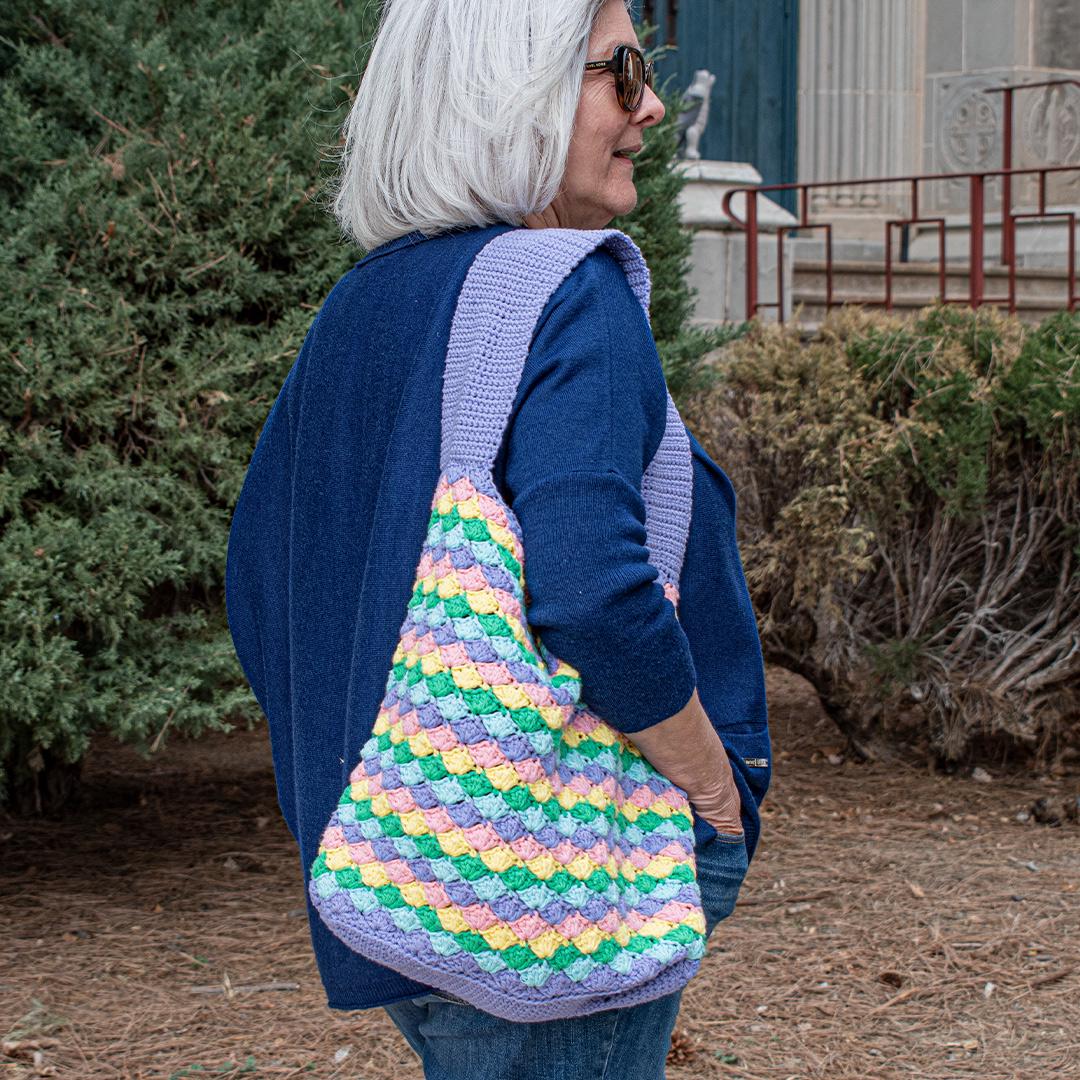 This roomy crochet shell bag works up beautifully and is a treat to make! It's a relaxing, repetitive project, with an easy stitch pattern (and there's a video tutorial). So find a shady spot, kick up your feet in your favorite deck chair, and enjoy some time for you!