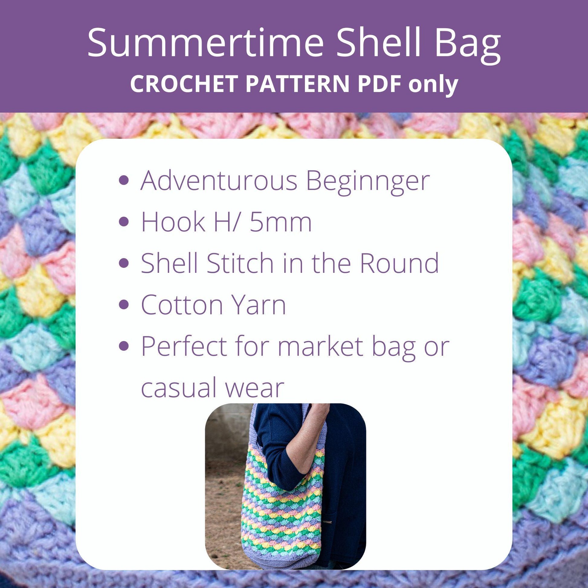 Summertime Shell Bag Crochet Pattern PDF - Easy Worsted Yarn Tote Pattern