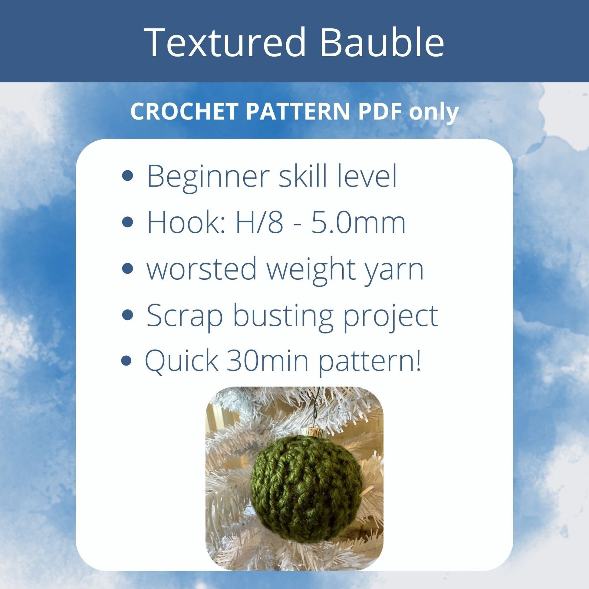 Textured Christmas Bauble crochet PATTERN. Christmas Tree Ornament crochet pattern PDF digital download only Alpine Stitch